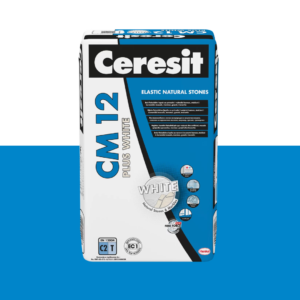 CERESIT® CM 12 PLUS je fleksibilno ljepilo za pločice namijenjeno za polaganje porculanskih pločica i ostalih keramičkih, cementnih i pločica od prirodnog kamena (colorfast) u unutarnjim i vanjskim prostorima. Ljepilo CM 12 PLUS može se koristiti u vlažnim prostorijama i u prostorijama s podnim grijanjem. Ljepilo za pločice CM 12 PLUS nanosi se na ravne, nosive i kompaktne podloge, bez ikakvih tvari koje smanjuju prionjivost (masnoća, bitumen, prašina).