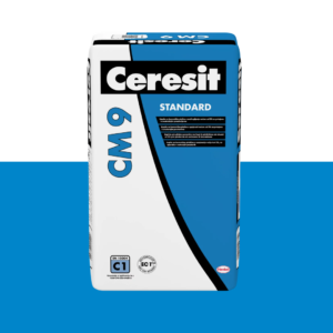 CERESIT® CM 9 je standardno cementno ljepilo za pločice za polaganje keramičkih pločica i ploča s profiliranom podlogom u unutarnjim prostorima. CM 9 se može nanositi na kompaktne, čvrste i nosive podloge bez sredstava za smanjenje prionjivosti (masnoće, prašina, bitumenski premazi, ostaci crne izolacije, obojeni premazi i sl.). Preporučuje se za keramičke, glazirane, terakota i porculanske pločice.